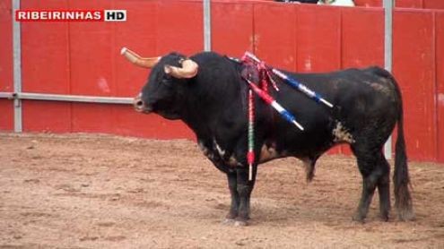 A imagem da “coltura” tauricida, em Loureiro, com o “selo de qualidade” espetado no lombo deste magnífico ser, torturado para divertimento dos poucos sádicos que se deslocaram ao recinto da tortura.