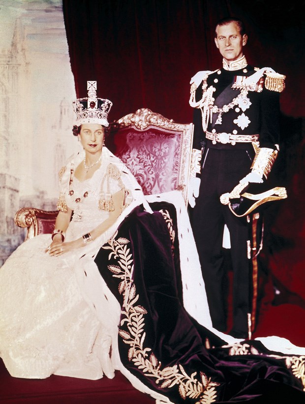 A Rainha Elisabeth II, no dia da sua coroação, com Philip, Duque de Edinburgh, nascido Fhilip da Grécia e Dinamarca, marido da rainha e Príncipe Consorte do Reino Unido, da Grã-Bretanha e Irlanda do Norte e dos reinos da Comunidade das Nações de 1952 até sua morte em 09 de Abril de 2021, no Castelo de Windsor, no Reino Unido